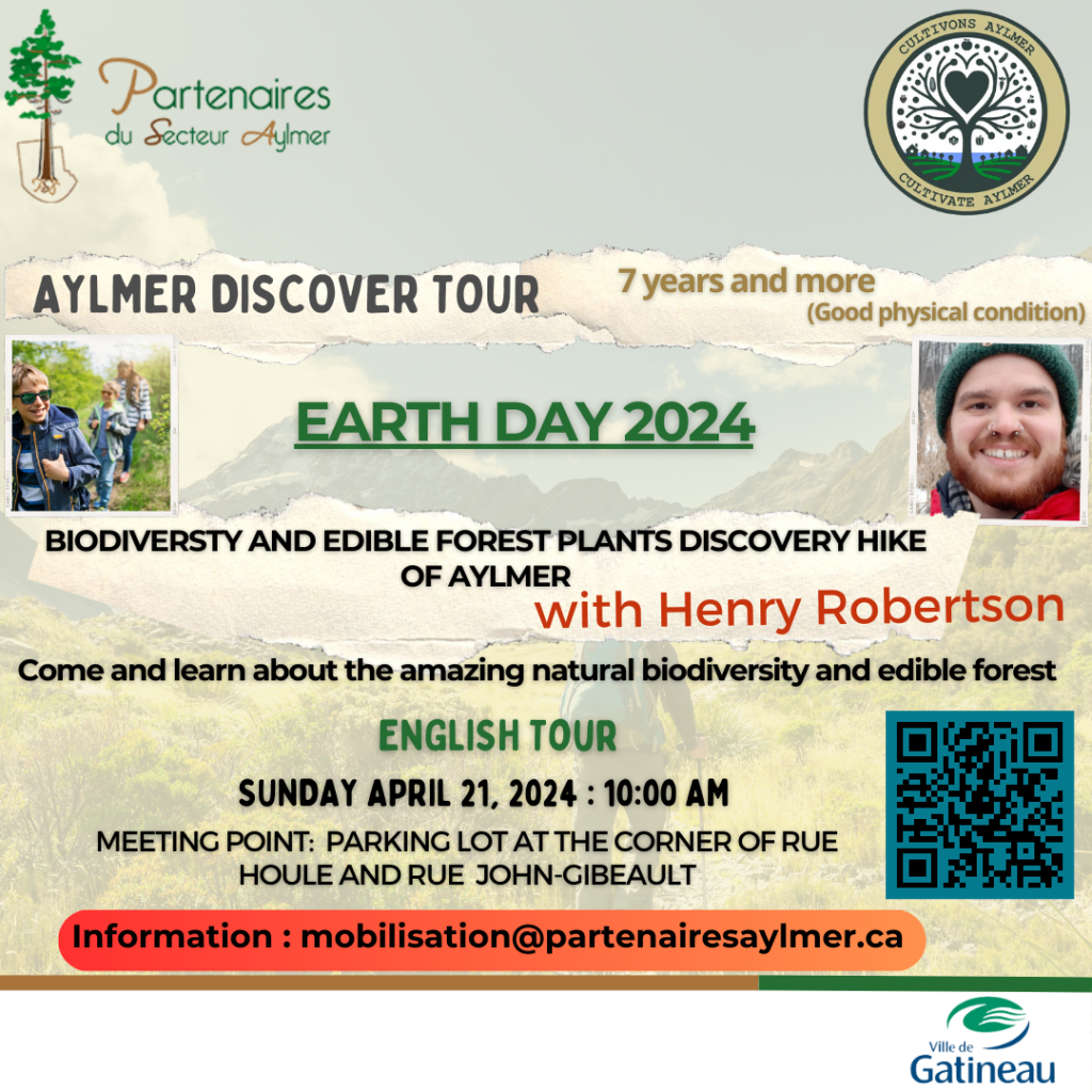 Partenaires du secteur Aylmer is organizing of discovery tours of Aylmer as part of Earth Day 2024 and Cultivons Aylmer project.