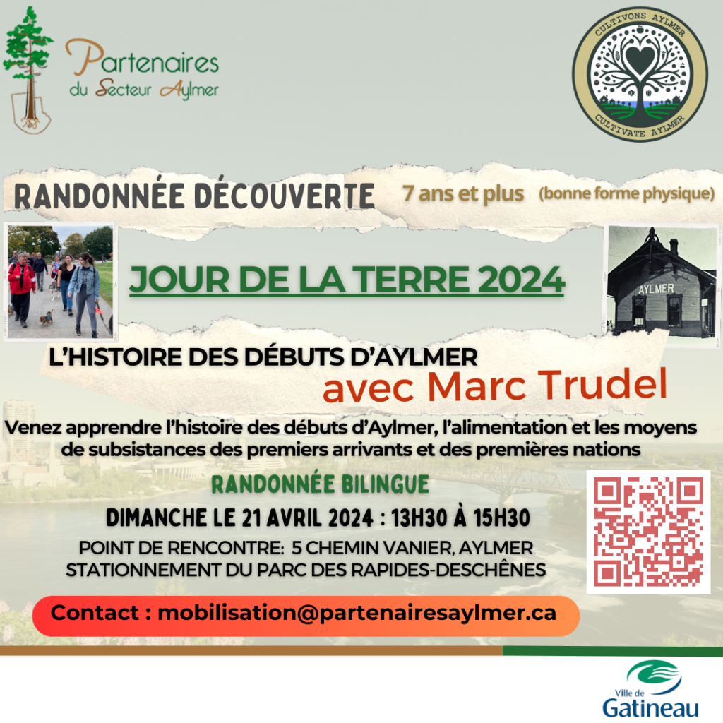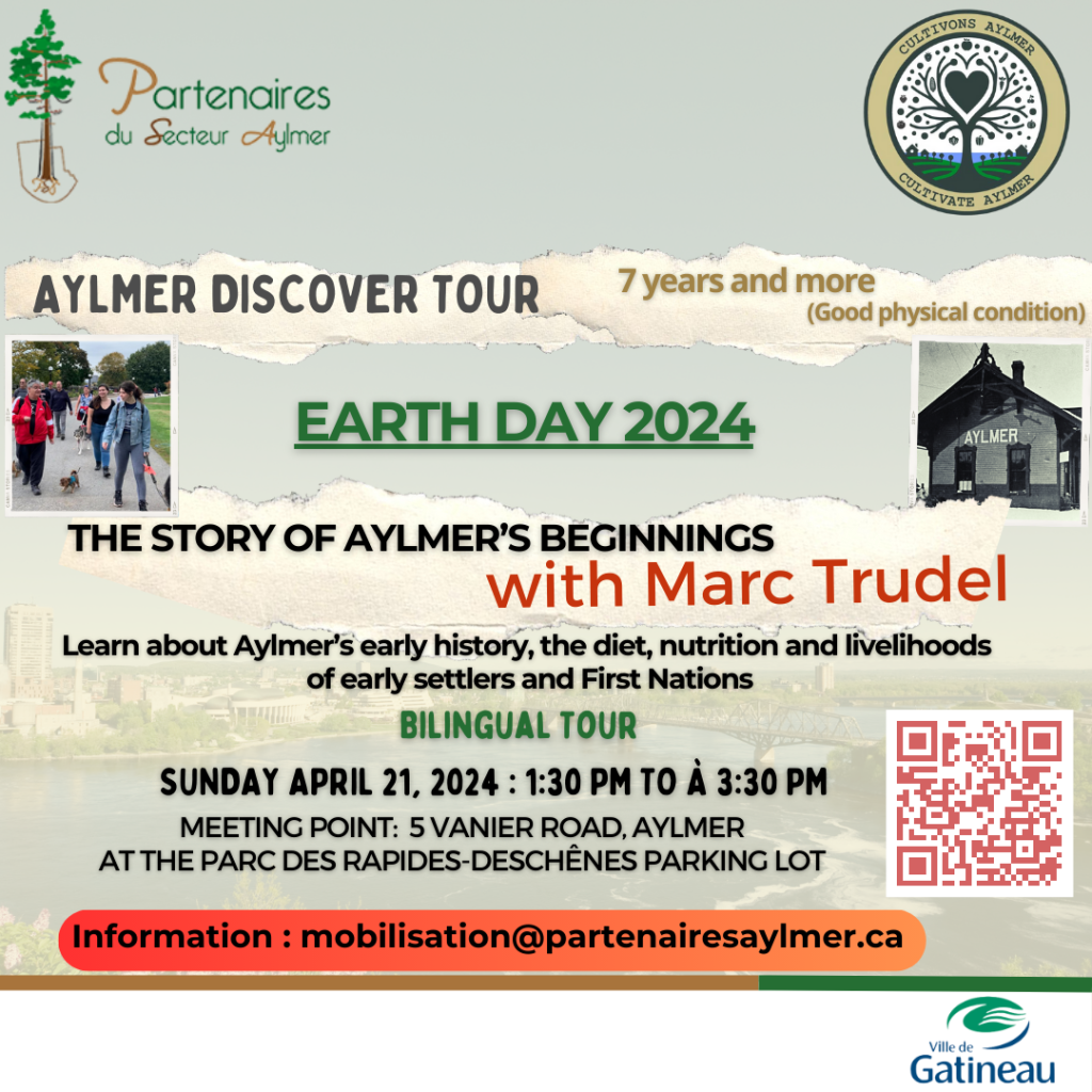 Partenaires du secteur Aylmer is organizing of discovery tours of Aylmer as part of Earth Day 2024 and Cultivons Aylmer project.